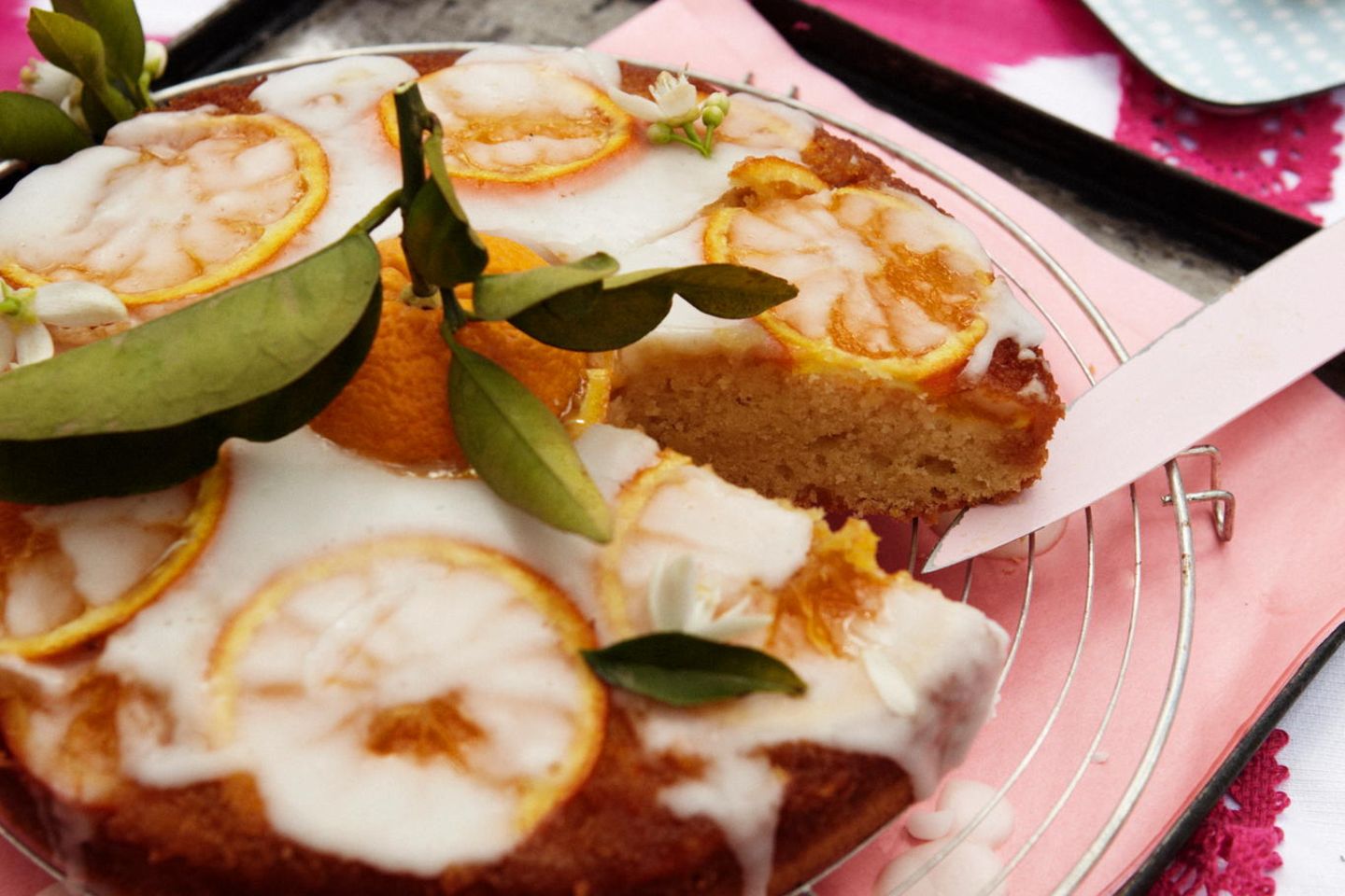 Rezept für saftigen orangen kuchen mit orangenschale und orangensaft.