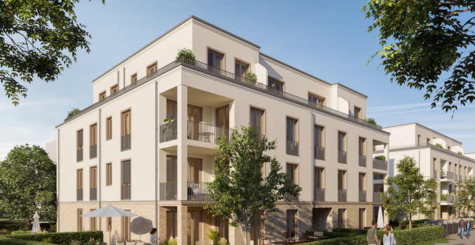 Die wohnanlagen umschließen begrünte innenhöfe mit.